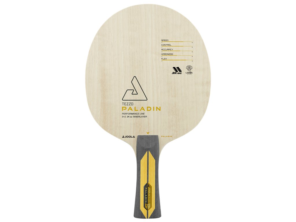 JOOLA TEZZO Paladin vede křížovou výpravu s mírnou moudrostí, jedinečná kombinace měkké vnitřní vrstvy 3K-sc poskytuje pocit vysokých vibrací a výjimečnou flexibilitu dřeva. Se 7 vrstvami a vrchní vrstvou limba je dřevo Paladin perfektním párem pro tvrdší potahy a vytváří měkký, ale pružný efekt pro snadnou hru.