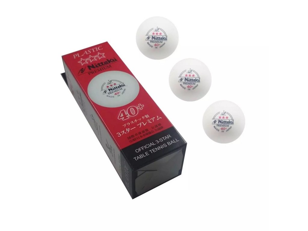 Plastové míčky Nittaku Premium *** 40+ se vyznačují nejvyšší kvalitou a perfektní kulatostí. Výhodou je i velmi dlouhá trvanlivost. Balení: 3 ks v krabičce