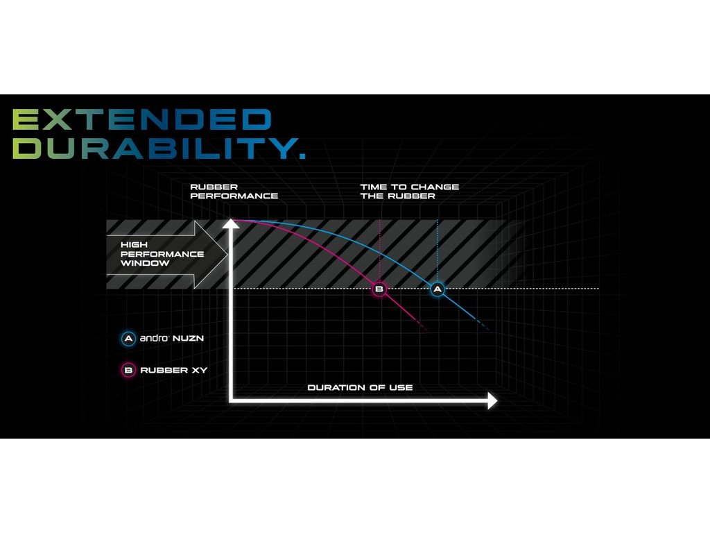 Andro představuje revoluční potah NUZN 50, vyrobený s houbou o tvrdosti 50 stupňů, který posune váš výkon na novou úroveň. Tento potah poskytuje vysokou dynamiku a silnou rotaci při útočných úderech, což vám umožní přehrát soupeře a plynule přejít z pasivní hry do aktivního útoku.