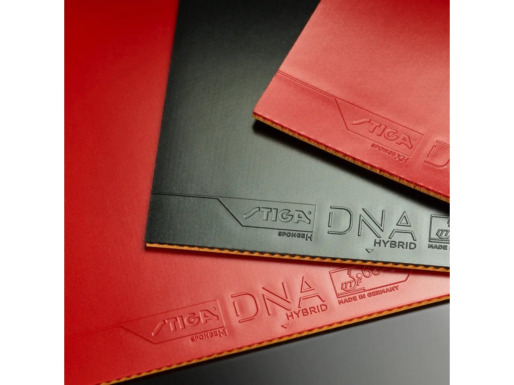 Středně tvrdá houba DNA Hybrid M je určena pro hráče, kteří hledají dokonalou rovnováhu mezi kontrolou a rychlostí. Umožňuje hráči snadněji vyhrávat výměny s útokem třetího míče nebo hrát na jistotu se spoustou rotace. DNA Hybrid M má jedinečný částečně lepivý povrch gumy, který umožňuje hráči snáze generovat maximální rotaci míče v náročných herních situacích. Speciální povrchová úprava poskytuje vynikající přilnavost a rotaci a přidává vysokou úroveň kontroly.